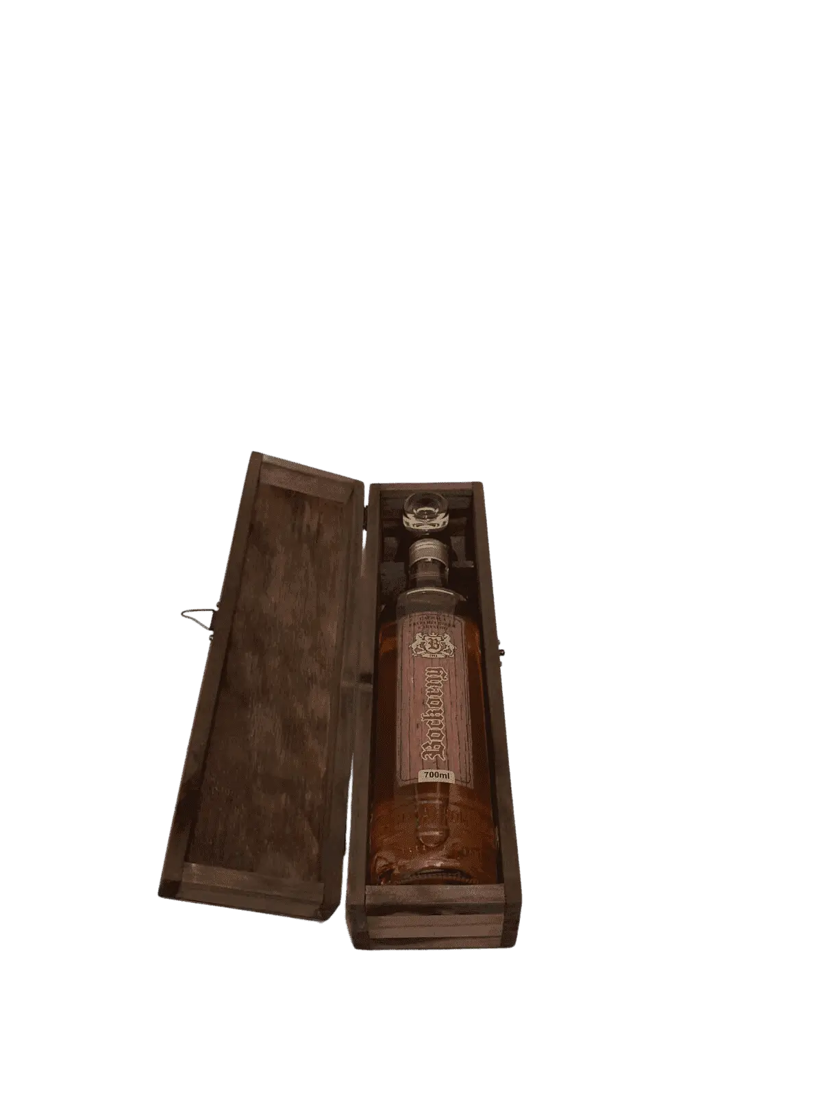 Em até 3x de R$48,33 Cachaça envelhecida em barris de Carvalho, 700ml mais um copo, em linda caixa de madeira medindo 35,5 x 9,5 x 9 cm.