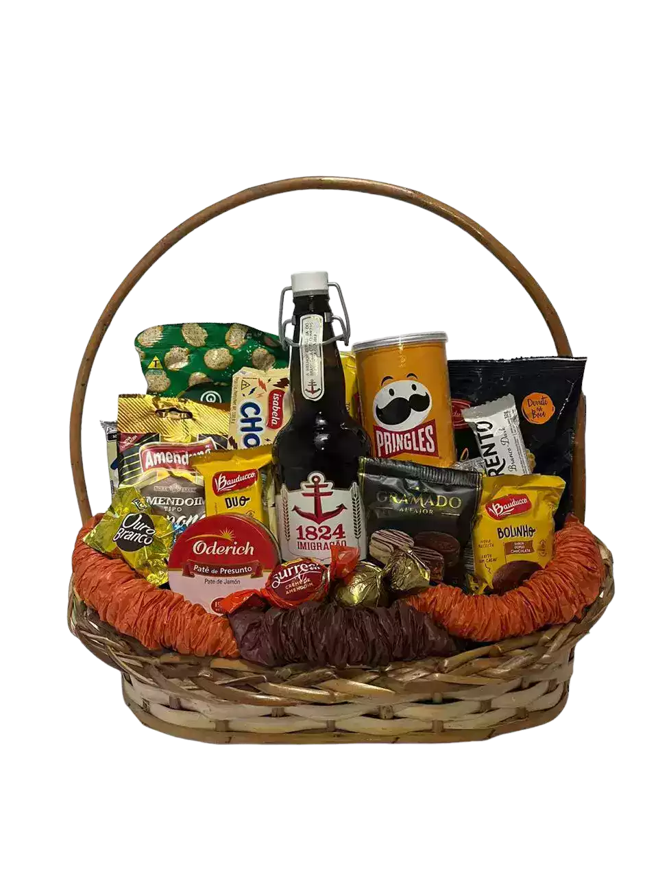 Em até 3x de R$95,30 Cerveja 1824, Alfajor, bolinho Bauducco, patê de presunto Oderich, amendoim salgado, biscoito doce amanteigado, Trento, Pringles, biscoito salgado, torrada, trufa, Club Social.